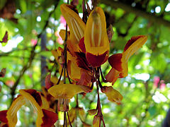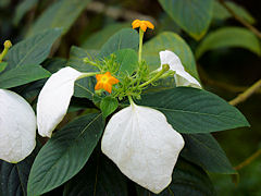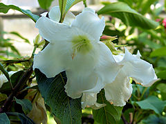 京都府立植物園の温室で咲いていた植物です。左からインド南部原産の「ツンベルギア・マイソレンシス」、種子島、屋久島、沖縄、台湾に分布する「コンロンカ」、インドからインドネシアに分布する「ボーモンティア・ムルティフロラ」です。どれもこれも覚えにくい名前ですよね。