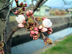 近所に「嫁付川」という川というかどぶ川というか??? が流れています。ここに20本ほどのソメイヨシノが植えられています。年々育ってきてきれいな花を咲かせるようになってきました。今はまだこのような蕾ですがそろそろ咲き出しそうです。嫁付け、独身男性がここで花見をすると嫁が見つかる・・・ そんな桜の名所にしたいもの。