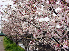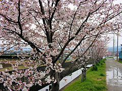 嫁付川も8日頃に満開となりました。昨日辺りから落花し始めたようです。まだこのようにきれいな桜並木ですが、嫁付川には花弁が沢山流れていました。ここで花見をした男性は花嫁が見つかったでしょうか。