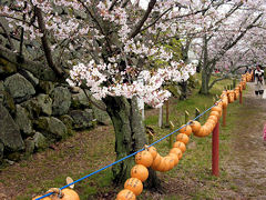 郡山城その2。天守閣があった周囲に、大数珠が囲んでいます。個数1080個、全長162m、総重量645kgあります。昭和36年にときの観光協会長の発願で築城以来この城にまつわる諸霊、石垣に埋められた仏石を弔うために、市民有志により作られたとか。平成16年に作り替えられています。この石垣には多くの石仏が埋め込まれています。いくら石が必要だったかもしれませんが、石仏を使用するとは・・・・ 「せんとくん」が愛嬌を振りまいていました。2010年に開催される平城遷都1300年記念事業のマスコットです。発表以来仏教界などから異論が出たりいろいろと物議を醸し出しているキャラクターですが、大人も子供も一緒に写真を撮って人気者でした。