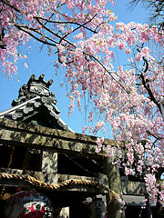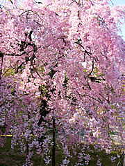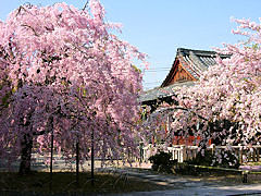 京都市北区紫野に真言宗「上品蓮台寺(じょうぼんれんだいじ)」があります。聖徳太子の創建と伝えられ当初は香隆寺(こうりゅうじ)と言ったそうですが、天徳4年(960年)宇多法皇の勅願により再建されて上品蓮台寺と改められ多くの伽藍が建ち並ぶ壮大な寺院でしたが応仁の乱で焼失しました。文禄年間(1592~1596年)に再建されました。中に入るとこのような見事な枝垂れ桜が迎えてくれます。