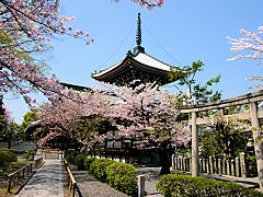 京都市上京区聖天町に「雨宝院(うほういん)」(通称:西陣聖天)があります。弘仁12年(821年)に嵯峨天皇の病気平癒を祈願して、空海が大聖歓喜天像を彫り病は直ったとか。そこで嵯峨天皇は、空海を開基として雨宝堂を建立したのが創建と伝わっています。創建当時は広大な寺域だったそうですが、応仁の乱で荒廃。天正年間(1573~92)に再建されました。境内は狭く注意しないと通り過ぎてしまいそうです。私も通り過ぎてしまいました。八重桜や枝垂れ桜が境内いっぱいに咲いていました。