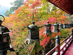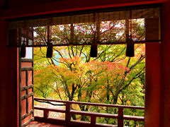 談山神社その4。拝殿からの風景です。拝殿は、永正17年(1520年)に造営された重要文化財です。簾越しに見る紅葉もなかなかのものです。