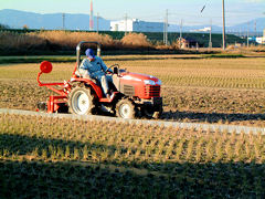 寒い日が続きますが、ときにはこのような小春日和の日がありますね。田圃はこのように初冬の風景になっています。そんななかトラクターが耕していました。