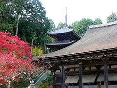 長寿寺その2。本堂までの参道と本堂です。本堂は、国宝で創建時のものは焼失しましたが鎌倉時代に再建されました。内部は、正堂と礼堂に分かれた奥行きのある堂となっています。藤原時代の雰囲気を残した本堂となっています。