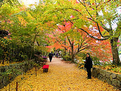 湖南三山の二つ目は、「長寿寺」です。パンフレットによると、天平年間(729年~749年)に良弁僧正が聖武天皇の勅命により建立しました。聖武天皇の皇女が生誕したので、柴香楽宮の鬼門に当たる当地に七堂伽藍、二十四坊の立派な寺を建立して皇女の長寿を願い長寿寺という寺号を授けたことが始まりということです。参道はイチョウの葉で黄色い絨毯になっていました。