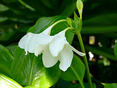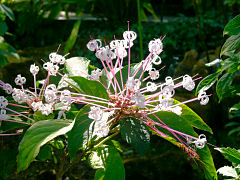 京都府立植物園にある温室の植物で、左から「クレロデンドルム」(フィリピン原産)、「オオオニバス」(中央・南アメリカ)、「ボーモンティア」(ヒマラヤ地域)です。