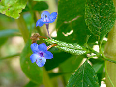 京都府立植物園・温室の植物その3です。左から「リュエリア・コロラタ」(ペルー、エクアドル、コロンビア)、「エランテムム」(インド)、「ビヨウタコノキ」(マダガスカル)です。