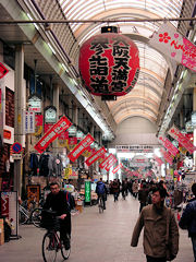 大阪天満宮への参道でもある天神橋の商店街です。大阪らしい雰囲気が感じられる商店街です。