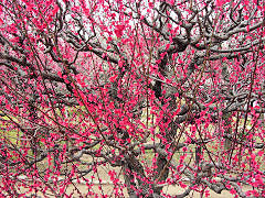大阪城公園梅林その2。梅林は昭和49年に開園しましたが、大阪府立北野高校の同窓会が、創立100周年を記念して大阪市に880本を寄付したのが始まりだそうです。