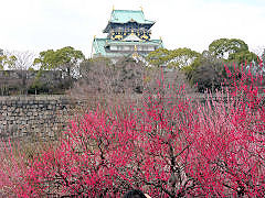 大阪城の梅林です。昭和49年に開園し、1200本の紅白の梅が咲いています。大阪城の石垣に梅が映えてなかなかの眺めでした。これから大阪城は、「梅」→「桜」→「桃」と花が競演します。