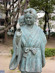 大阪市北区天満3丁目天満橋に近い南天満公園に「天満の子守歌」の歌碑がありました。 『ねんねころいち 天満の市よ だいこ揃えて舟に積む 舟積んだらどこまで行きゃる・・・・』 この子守歌は、天満青物市場を歌ったものだそうです。天満青物市場は、承応2年(1653年)に出来て、昭和20年の戦災で廃絶したそうです。子守唄のほとんどは少女が子守をする悲しいイメージがあります。