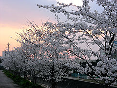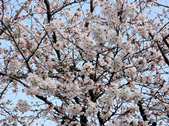 3月27日は、まだ蕾が多かった近くの桜ですが、今、満開を迎えています。夕焼けをバックにした桜もなかなかのものです。