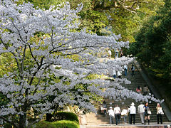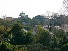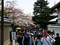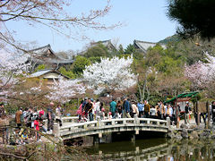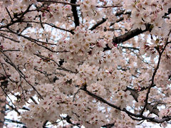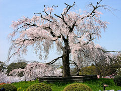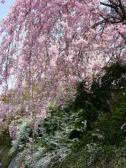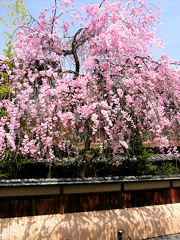 京都市内の桜もほとんどのところは満開となっています。円山公園の枝垂れ桜も満開です。年々枯れ枝が目立つようになって、撮す角度によっては貧弱なものになります。右の写真は円山公園から桜越しに知恩院の伽藍が見られます。