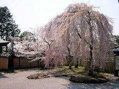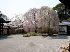 高台寺の方丈前庭には、2本の枝垂れ桜があり見事な花をつけていました。夜間のライトアップも綺麗なことでしょう。石楠花も咲いていました。(動 画)