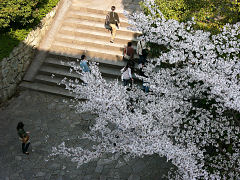 知恩院三門が春の特別公開をしていたので、登ってみました。なんと拝観料1000円。少し怖いような急な階段を登るとご覧のような風景が見られます。国宝なのに内部の柱などに落書きがあります。明治時代に書かれたもので、いつの時代でもこのようなことをする者がいるものですね。急な階段は登るときより降りるときの方が怖いですが、今までに落ちた人は一人もいないと係員の人は言っていました。