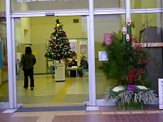 北部コミュニティーセンターでは、門松が飾られています。年の瀬ですね。ホールにはクリスマス・ツリーがあります。門松は少し早いようです。
