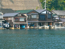 京都・丹後半島にある伊根町には、有名な舟屋があります。舟を格納する建物ですが、すぐに海に出られるように2階には網などの漁具を置くところだそうですが、住居のようにも見えます。現在230ほどの舟屋があるそうです。