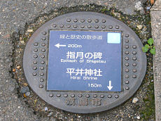 (「水辺の道」② 2007. 1.10 の続き) 倉庫のような建物ですが、「蓮開寺」という寺院です。案内板によると創建は定かではないが、享保18年(1733)には存在していたそうです。平井神社に附属した真言宗の寺で宮寺と呼ばれていました。明治維新の神仏分離により宮寺は廃止になり荒廃したようです。 道路のポイントには、このような指示版がありこれを辿れば目的地に行けるようになっています。 「指月の碑」は民家の玄関先にあり、見落とすような小さいものです。どのようないわれがあるのかわかりませんでした。