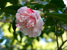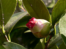 京都府立植物園に咲いていた椿です。左から「数寄屋(すきや)」、「元日(がんじつ)」、「京唐子(きょうからこ)」です。