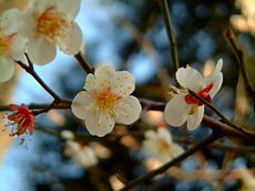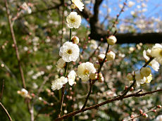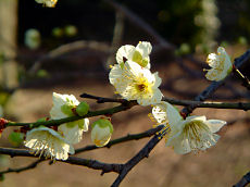 京都府立植物園の梅です。2本の梅が花をつけていました。それと「ソシンロウバイ(素心蝋梅)」です。中国原産で梅と名前が付きますが、梅の仲間ではないそうです。