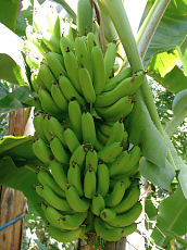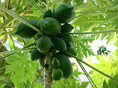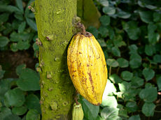 左から「パパイア」、「コーヒーの木」アラビアコーヒーは、香気もよく上質なコーヒーを生産します。「カカオ」は自然では結実しないので、人工交配で結実させます。幹に直接実がなるので幹生果と言うそうです。粉末にして砂糖、香料を混ぜて固めたものがチョコレート、粉末から脂分を除いたものがココアです。