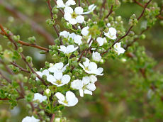 この頃は、三寒四温の気候が続いています。「水仙や 寒き都の ここかしこ」(与謝蕪村)と詠まれた水仙、葉ボタンの冬の花が咲いていますが、春の花「ユキヤナギ」が咲き始めています。