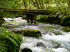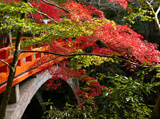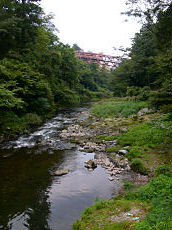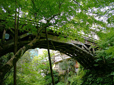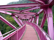 北陸の山中温泉には、鶴仙渓という「こおろぎ橋」より「黒谷橋」に至る1.3kmの遊歩道があり四季折々の景観を楽しむことができます。途中に「あやとりはし」といって草月流家元・勅使河原宏氏がデザインしたユニークなS字型の橋があります。