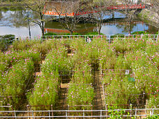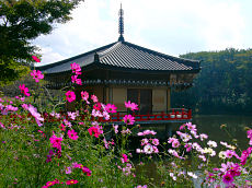 奈良県桜井市にある安倍文殊院(あべもんじゅいん)です。コスモスの名所でもありますが、ユニークなのはコスモスで迷路が作られていることです。各種のコスモスが植えられていて、花壇にするより簡単な迷路を作って見せるといった遊び心があってよいと思います。