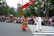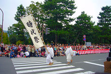 10月22日は、葵祭、祇園祭と共に京都三大祭りのひとつの時代祭がありました。1895年(明治28年)、平安遷都1100年を記念して平安神宮が創建され、平安神宮の大祭、建造物、神苑の保存のため、市民により平安講社が組織され、記念事業として時代祭が始まりました。祭が行われる10月22日は、桓武天皇が794年(延暦13)に長岡京から平安京に都を移された日です。行列は、明治維新から延暦時代へさかのぼって、18列、2000人に達し行列の長さは2キロに及びます。