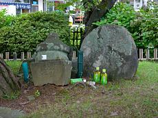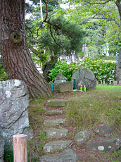 中尊寺の参道の近くに武蔵坊弁慶の墓と言われているものがあります。衣川戦いで立ち往生したと伝えられていますが、左の写真はその衣川の館あった風景です。手前に立派な墓があるのですが、近世に建てられたもので、その奥にあるこの写真のものが弁慶の墓だと思います。