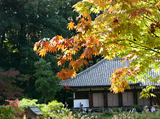 加茂町にある浄瑠璃寺です。やっと紅葉が始まったようです。ほとんどの樹は青々としていますが、2~3の樹は少し色づき始めたようです。