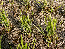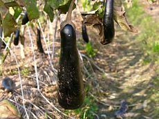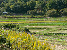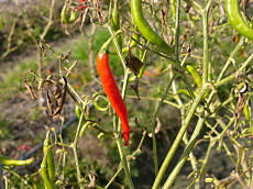 稲刈りのあと、また新しい芽が出てきています。収穫されなかった茄子は随分大きくなっています。唐辛子も赤くなって辛そうです。初冬の風景です。