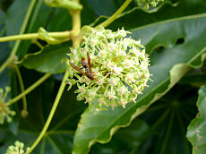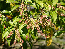 浄瑠璃寺の参道にある馬酔木は花芽を付けています。ヤツデが花を咲かせていました。