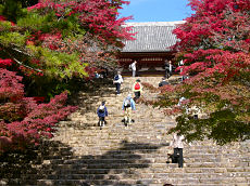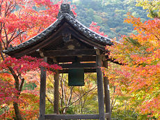 槙尾の西明寺です。神護寺より紅葉は進んでいました。鐘楼の周囲はこのように赤、黄、黄緑が交わって一番綺麗な頃となっています。