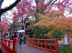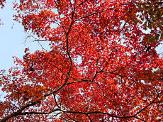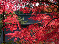 高雄神護寺です。紅葉はだいぶ進んでいますが、見頃はあと10日後ぐらいでしょうか。一部の樹はこのように見事に紅葉していました。高雄周辺はほとんどが青々としたモミジでした。