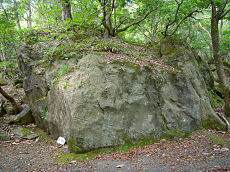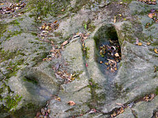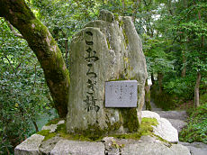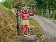 丹後半島の大江山には酒呑童子の伝説がありますが、ユーモラスな鬼が迎えてくれます。鬼が川を飛び越えたときに出来たという鬼の足跡です。その鬼を退治したという源頼光が腰を掛けたという腰掛岩です。