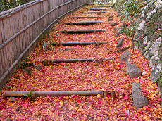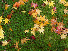 大原・三千院です。宸殿から往生極楽院を見たお馴染みの写真です。杉苔に散ったモミジが見事な錦を描いていました。童地蔵もモミジと共に佇んでいました。それにしても人が多すぎる大原一帯です。