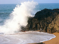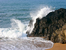 海岸で岩に砕け散る波を撮してみました。同じことの繰り返しのようですが、毎回波の表情が違います。