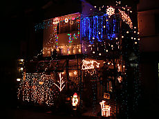 12月になると、このようなイルミネーションを飾る家が多くなりました。これだけ飾ると設備投資も電気代もかかるのではないでしょうか。