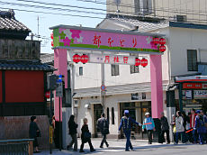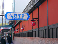 祗園八坂神社に向かう四条通りです。途中に「花見小路」通りがあり、赤壁の建物が「一力」です。明日から「都をどり」がスタート、各花街の「をどり」が始まります。