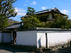 奈良公園の春日大社・二の鳥居から上高畑町に通じる道を、下の禰宜道(しものねぎみち)、通称「ささやきの小道」といいます。かって、高畑の社家町から春日の禰宜(神官)たちが春日大社に通った道です。今は恋人たちが囁きながら歩くということでこの名が付いています。この道は馬酔木の木のトンネルになっています。出たところにこのような白壁の白樺派の文豪「志賀直哉」の旧宅があります。