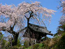 綴喜郡井手町にある曹洞宗「地蔵禅院」です。この地蔵禅院の枝垂れ桜は京都府指定の天然記念物で、享保12年(1727)に植樹されたそうです。幹周2m40cm、樹高10mで南山城地域で他に例のない優雅な枝垂れ桜です。