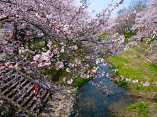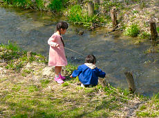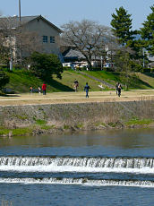 井手町を流れる川の両土手には、ソメイヨシノが植えられていて、井手町桜祭りという提灯があり、この提灯に火が灯る頃は一段と美しい夜桜を見ることが出来そうです。子供が河原で遊んでいました。水遊びも楽しい時節になってきました。
