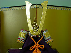 「♪ 柱の傷は一昨年の五月五日の背比べ・・・♪」「♪ 甍の波と雲の波重なる波の・・・♪♪」五月人形を飾りました。