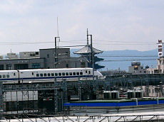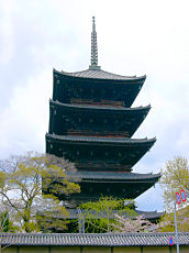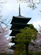 東寺の五重塔です。現在の職場から遠くに眺められる新幹線と五重塔。東寺で撮した満開の桜と五重塔。