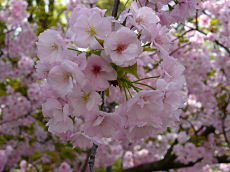 大阪造幣局の「桜の通り抜け」です。左から今年の花として紹介されていた「大手鞠」。次が、京都嵯峨中院に自生のものを祇王寺に植えたもので平家物語に出てくる祇王・祇女の姉妹にちなみ「祇王寺祇女桜」という優雅な桜。次が「蘭蘭」、上野動物園のパンダ「ランラン」の死を悼んで昭和55年の子供の日に北海道松前町の子供たちが命名したそうです。