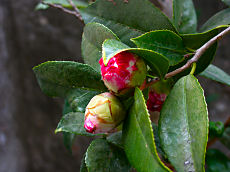 例年なら咲き終わっている我が家の鉢植えの梅は、今年はまだ蕾です。ツバキもこのように硬い蕾です。
