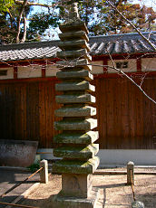 流れ橋の近くにある石田神社です。祭神は素盞烏神で大宝二年(702年)の上津屋の地に祀ったのが始まりで治承四年(1180年)源頼政の兵乱により焼失、文治四年(1188年)源頼朝により再建と歴史がある神社です。現在の本殿は嘉永四年(1851年)の造営です。この十三重の石塔は、南北朝時代のものだそうです。