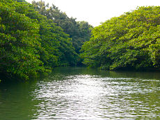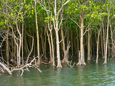八重山諸島の西表島にある仲間川です。日本のアマゾン川といった雰囲気のある川で両側にはマングローブの木が連なり、熱帯・亜熱帯の植物が一面を覆っていました。